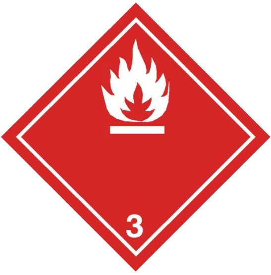 La clase 3 incluye la mayoría de las mercancías peligrosas transportadas, como la gasolina, el gasóleo, la acetona, algunas pinturas, barnices, alcoholes, disolventes, etc. Estas sustancias pueden arder al entrar en contacto con una llama o a un aumento de temperatura.